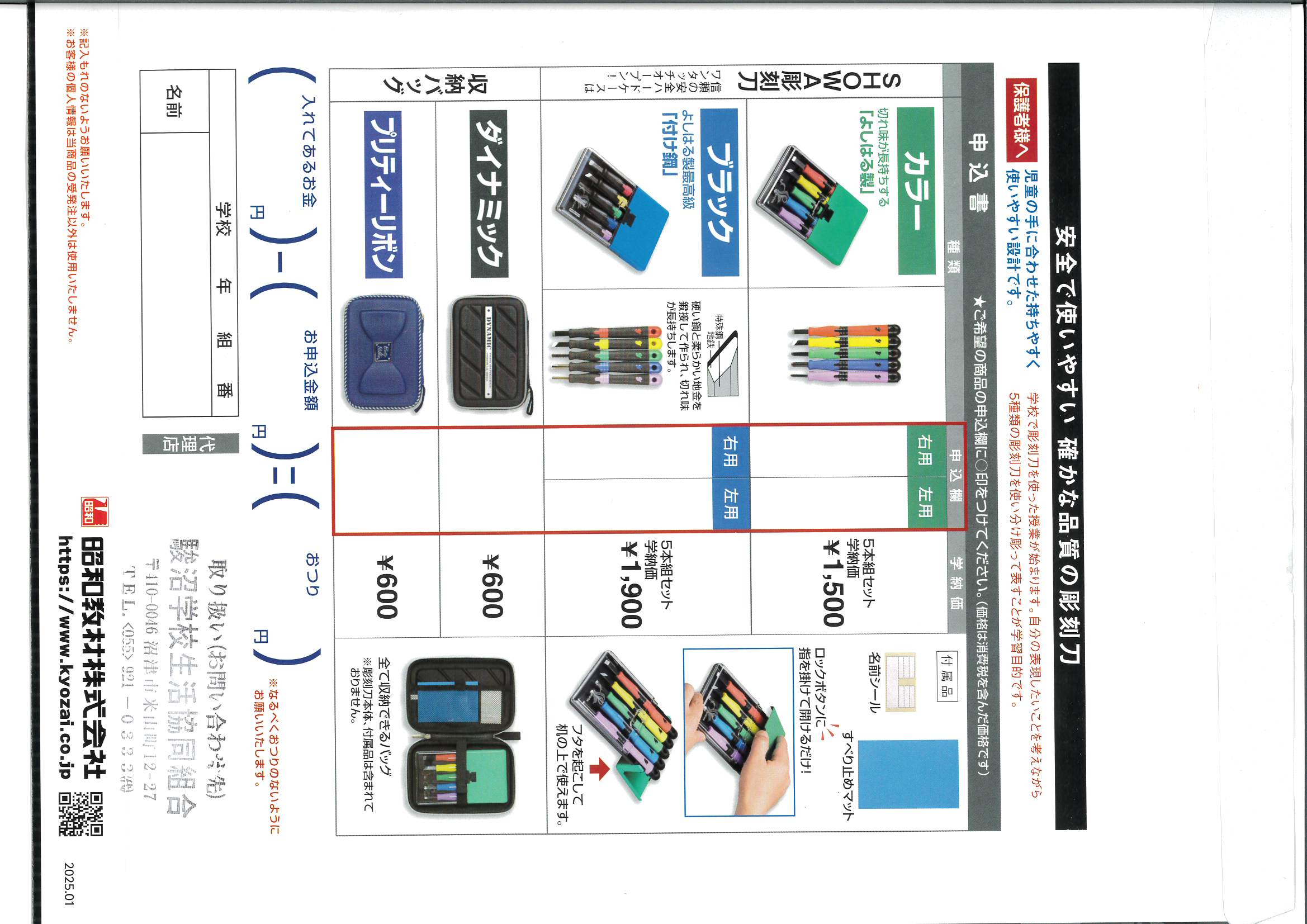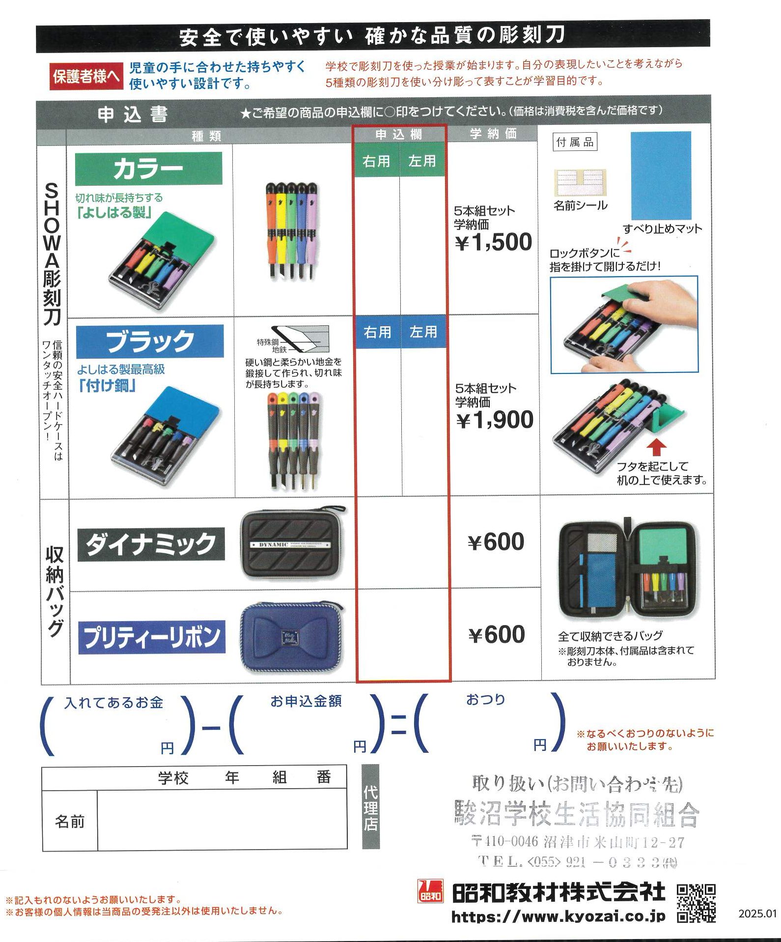 > 彫刻刀注文書 2025 SHOWA