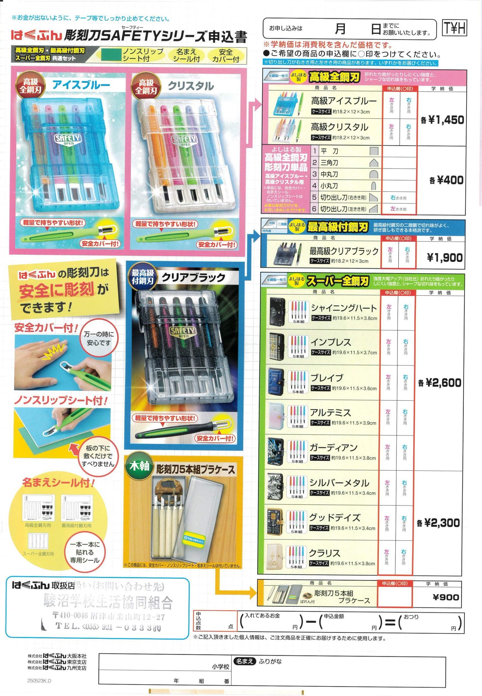 > 彫刻刀注文書 2025 はくぶん